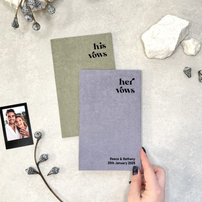 Personalized vow book set for Him and Her – the perfect touch for your wedding ceremony.